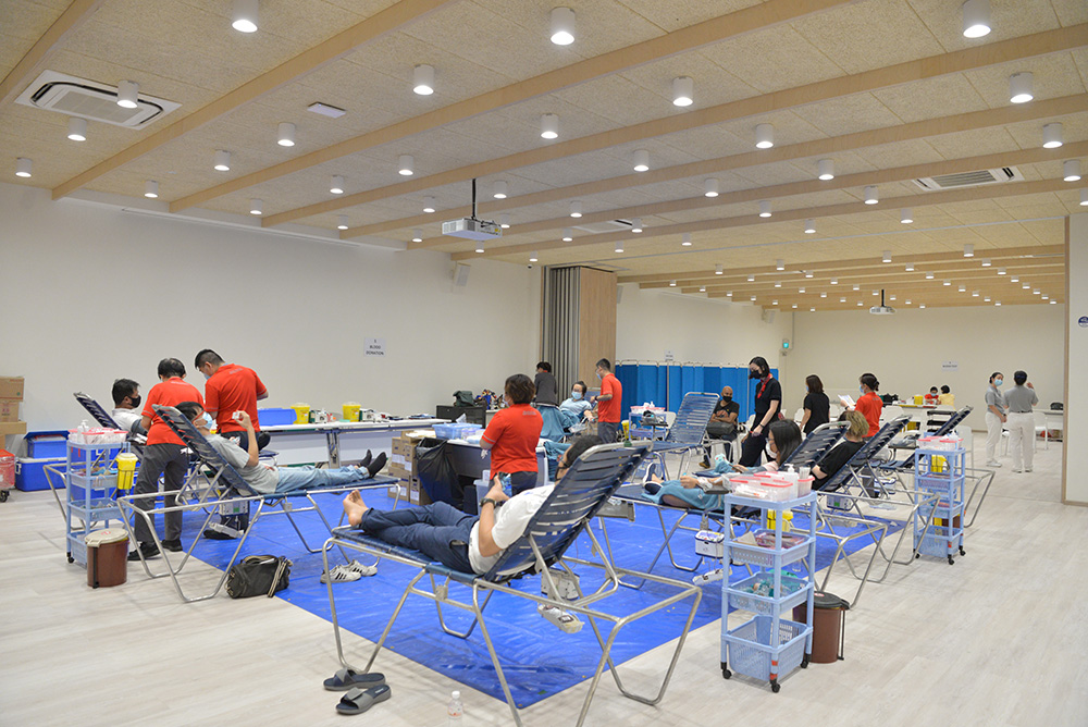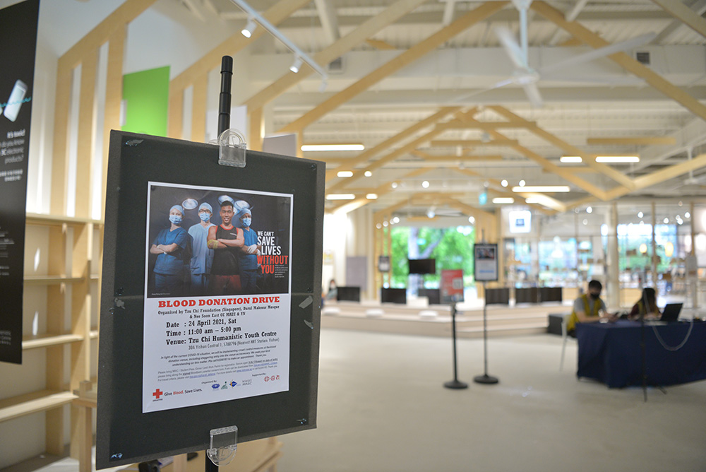 As Nee Soon East Community Club is designated as one of the vaccination centres, the blood donation drive organised by Tzu Chi Foundation (Singapore) and the Red Cross is moved to Tzu Chi Humanistic Youth Centre for the first time.