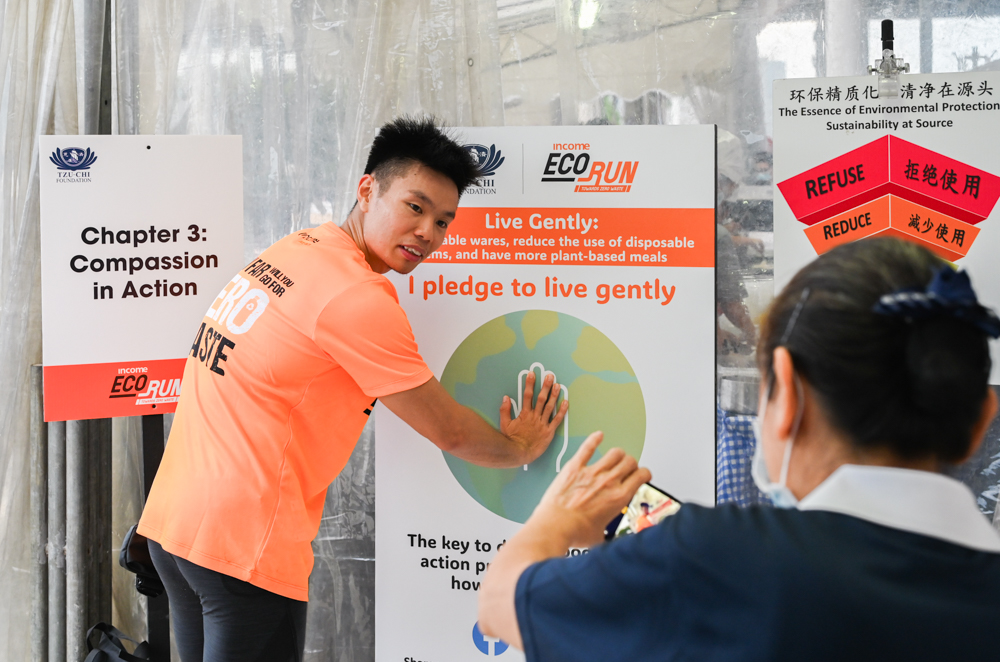 Agreeing with the environmental concept and the idea of running for a good cause, participant Li Lan Ying and her friends decided to run together. Li Lan Ying shared that they usually emphasise eco-friendly practices in daily life, such as bringing their reusable tableware and using public transportation. She vowed, "From now on, I will eat less meat and do more for the environment. It may be a bit more troublesome, but we hope to make a big difference with small efforts."