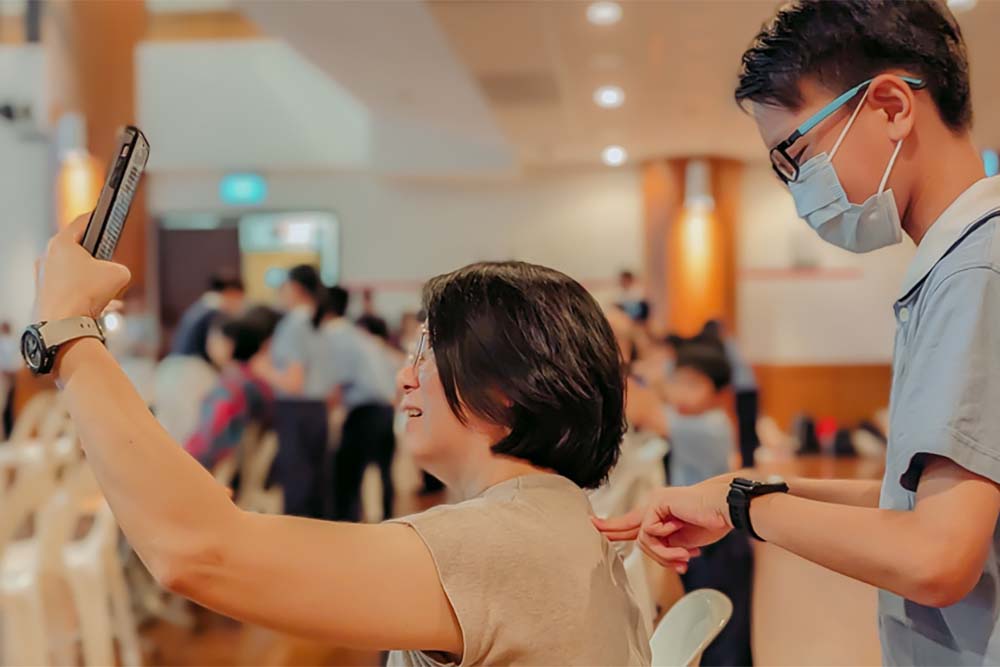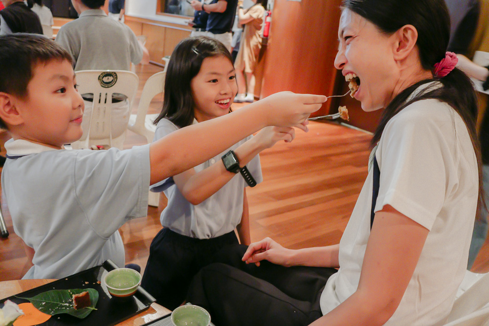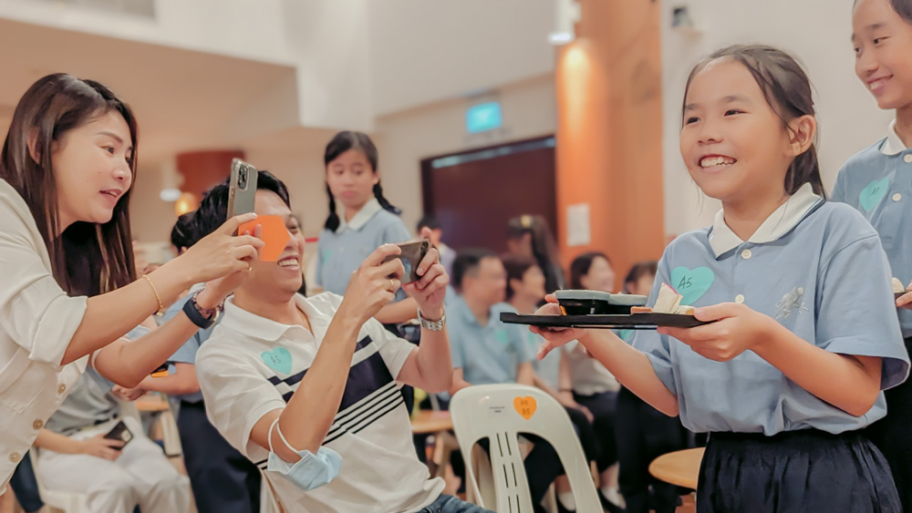 During the tea ceremony, many parents took out their mobile phones to capture the moment when their children approached them with tea. (Photo by Yang Wen Ting)