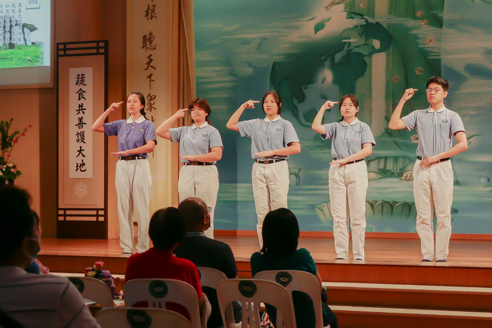 Tzu Shao performing the song "Kneeling Lamb" in sign language to express filial piety. (Photo by Tew Yu Rui)