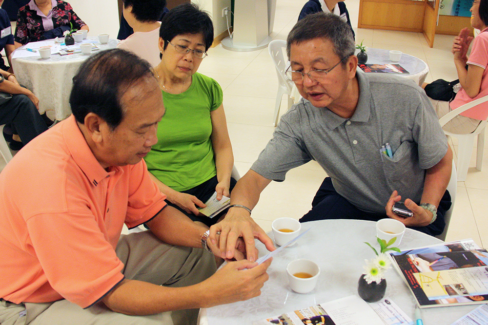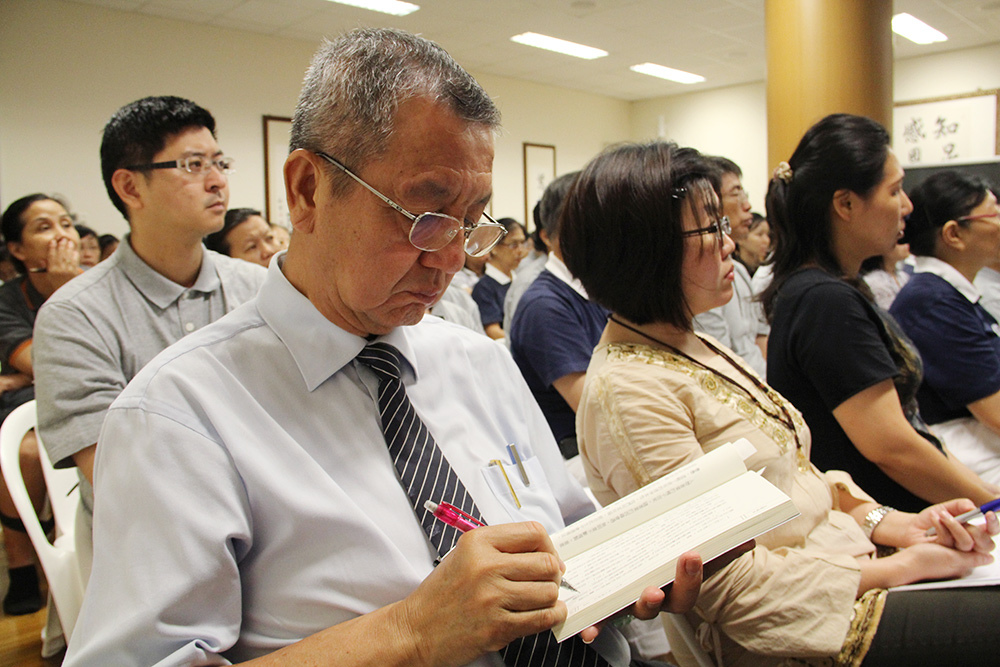 Mr. Sim Hee Chew, one who maintained his daily habit of attending Dharma Incense Permeation in order to remain vigorous, had been diligently taking notes and displaying an earnest attitude in his quest to seek out Dharma teachings during community-led book clubs since 2011. (Photo by Lee Foo Tien)