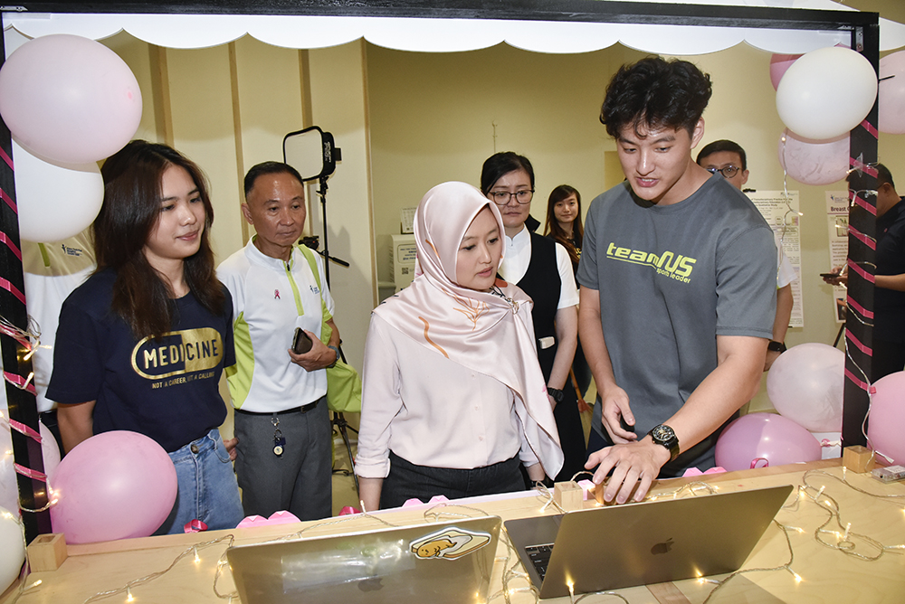 To kick off Breast Cancer Awareness Month in Singapore, Senior Parliamentary Secretary for Health and Law, Rahayu Mahzam, attended the event to show her support and visited different booths at the site. (Photo by Goh Shoo Weng)