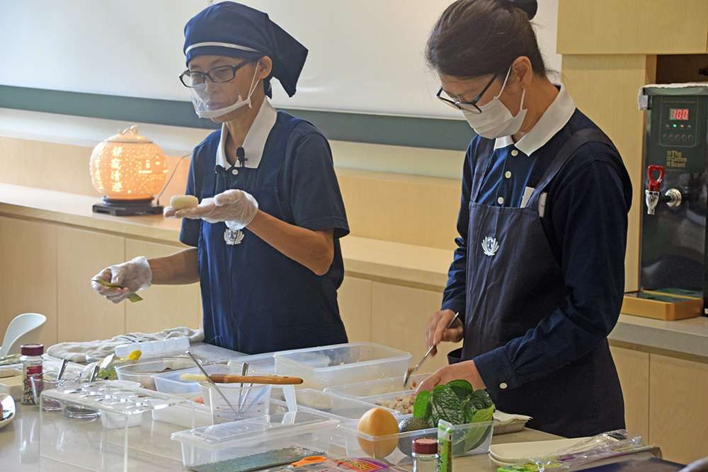Professional western chef, Joyce Goh (left) demonstrates how to use Jing Si instant rice to make delicious sushi. (Photo by Woh Ah Thiam)