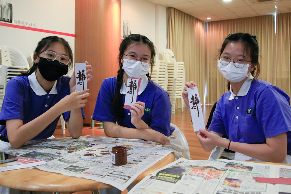 After completing all four game stations, the activities came to an end. Through drawing, volunteer Ang Lee Kuan introduced the Jing Si Aphorisms of the camp that read "Only when the mind remains calm, pure and respectful, the environment would be serene; the tranquil scenery in the heart is absolutely beautiful”. She hoped that the youths would remain calm and pure at heart at all times and face their future with respect.