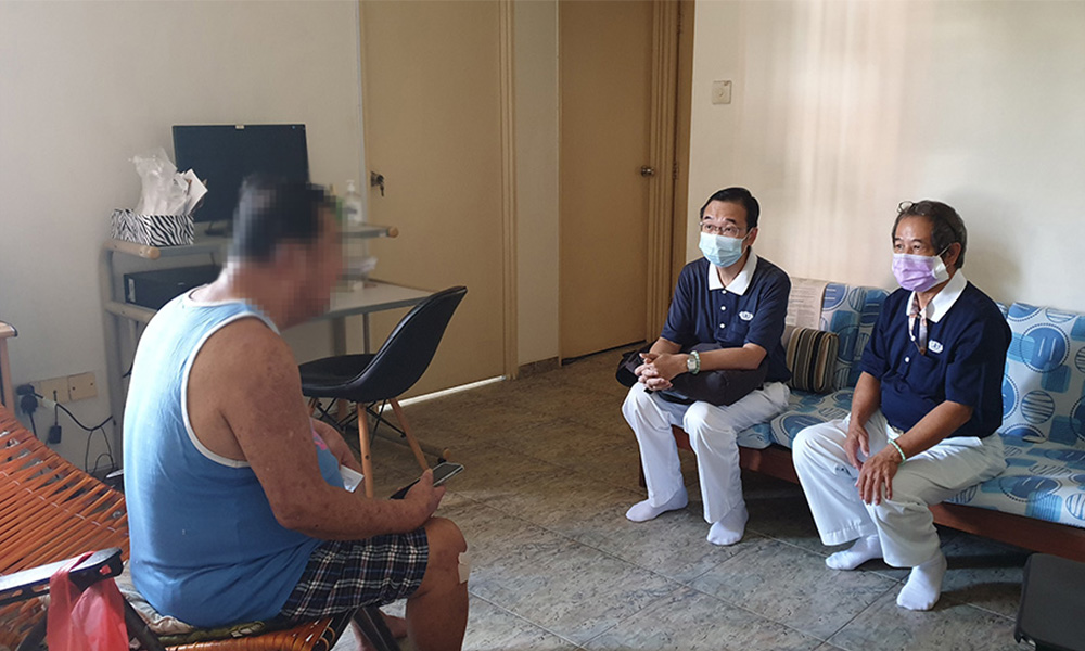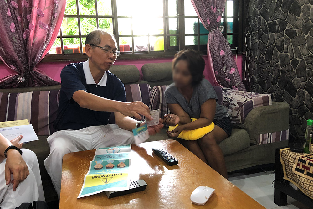 As COVID-19 started spreading in early 2020, volunteers shared with families during their visits verified information on the virus and educated them on hygiene and pandemic prevention tips. (Photo by Lee Beng Hwee)