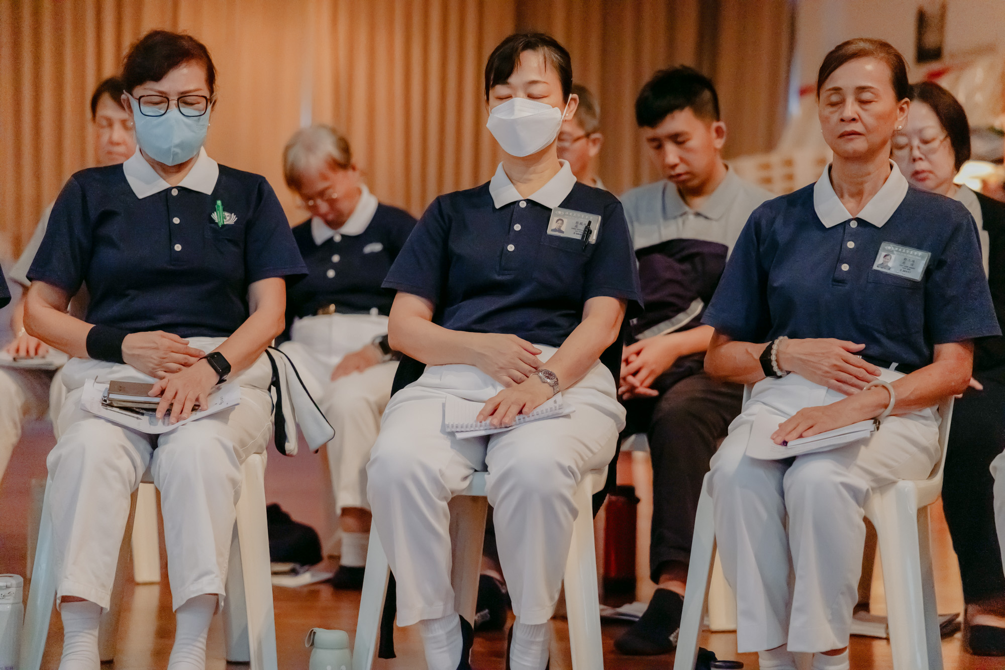 Loo Soon Huat, a home visit volunteer shared the story of a care recipient he accompanied for over four years. The care recipient once told the home visit volunteers about his deteriorating health, blurred vision, and hearing loss, and said that the Bodhisattva was taking him away. The volunteer did not respond appropriately at the time and only realised two months later these might be end-of-life signs. Through the 'Three Don’ts and Three Dos' mindset, Loo realised that by avoiding judgment, consolation, and advice, and instead practise acceptance, openness, attentive listening, and genuine care, he could provide better support to care recipients.