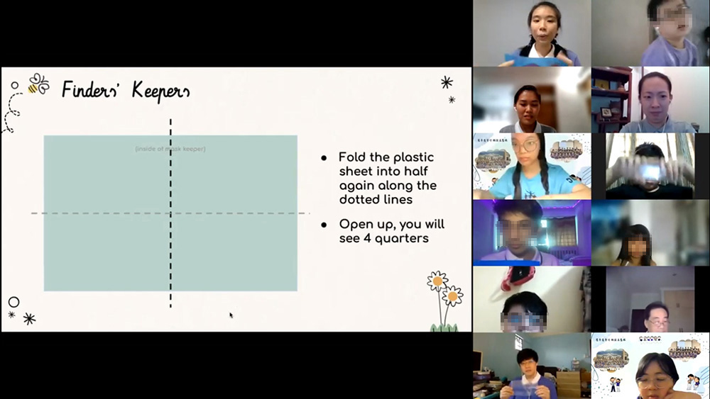 司仪潘苡吟在线上向慈青和照顾户孩子教导如何制作口罩收纳盒。(摄 / 周正阳)