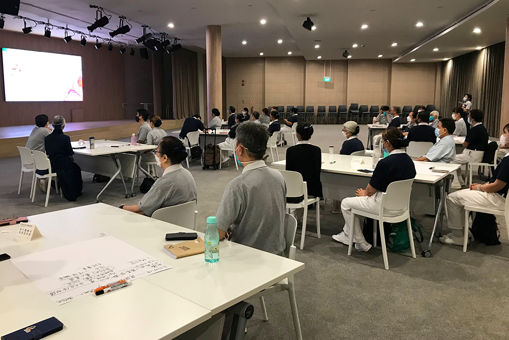 任何空间都可以无声说法,任何时候无不展现慈济人文的涵养。叶淑婷举例,当民众走入青年中心,志工可以从入口两边的志业海报开始讲述“竹筒岁月”的缘起,以及证严上人在小木屋苦修的故事,再转到对面介绍慈济的志业项目,包含国际赈灾和骨髓捐赠。