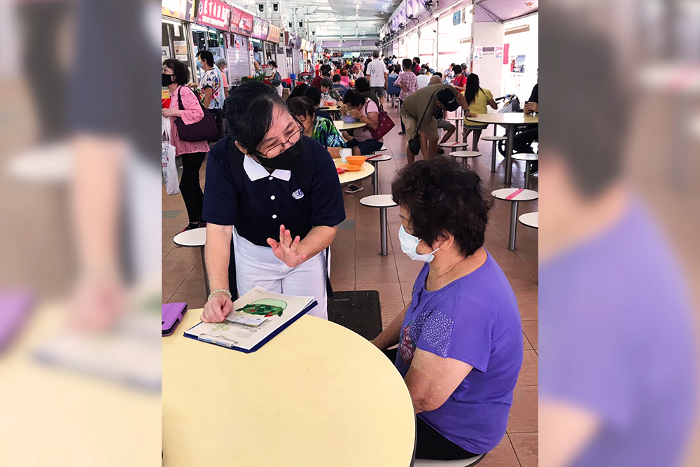 蔬友会曾每逢农历初一、十五在熟食中心推素,但疫情反复下,这一行动已取消。(提供/ 周净缘)