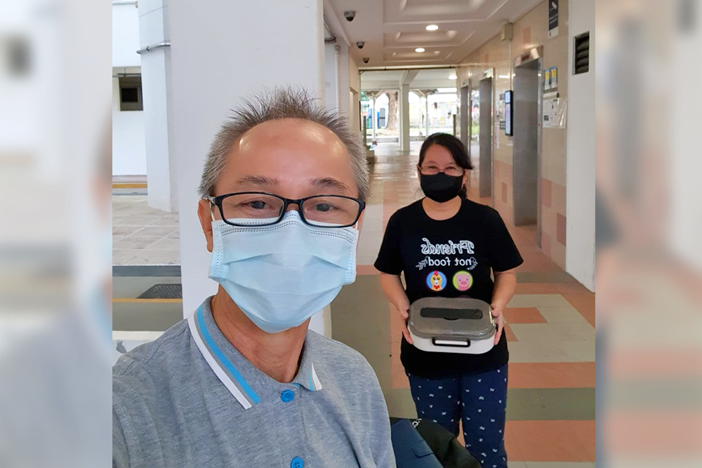 2021年,新加坡慈济在东区首次启动“健康挑战21”计划,周净缘也参与轮流接力送素便当。(提供/ 周净缘)