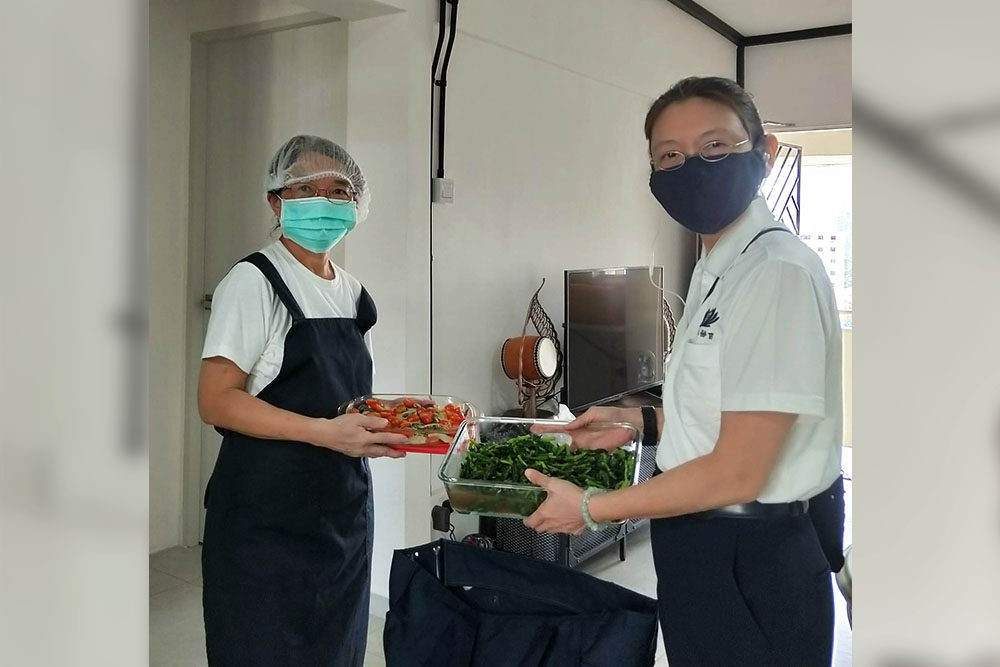 趁着午休,林丽芳会驱车到林华珍家,替红山诊所同仁领取热腾腾的两道素菜。(提供/ 林华珍)