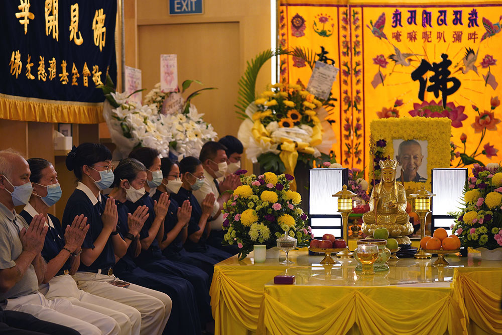 2022年4月13日晚上,慈济志工自动排班为黄国良助念。(摄/ 柯振兴)