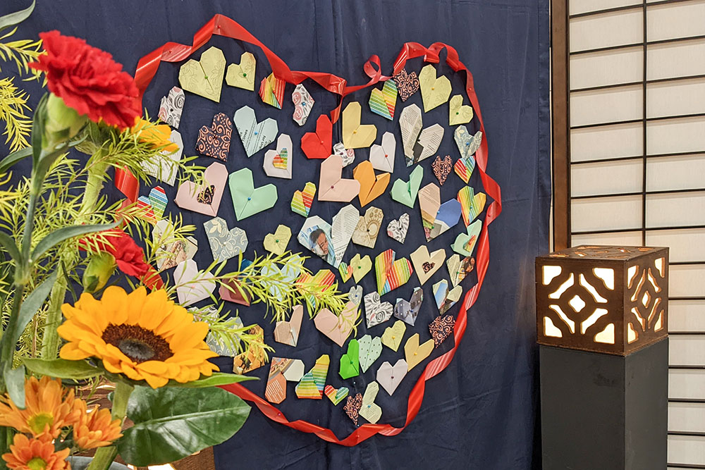 工作团队细心准备色彩鲜活的“爱心墙”,许多肾友都在此打卡合影。(摄/ 陈进财)