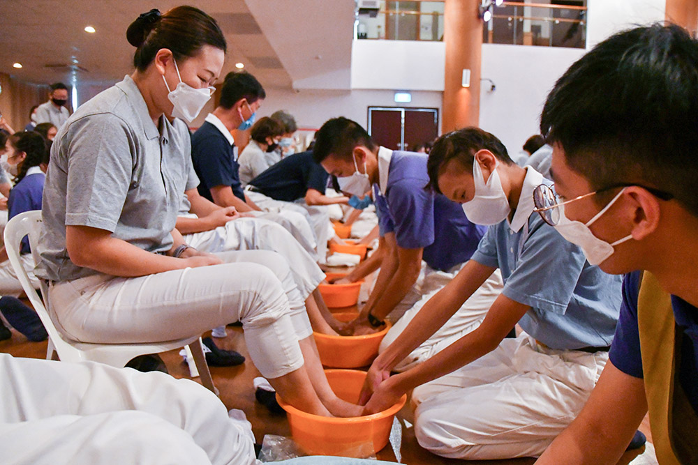 今年五月的双亲节活动,慈少为父母浴足和按摩。(摄/ 林碹珠)