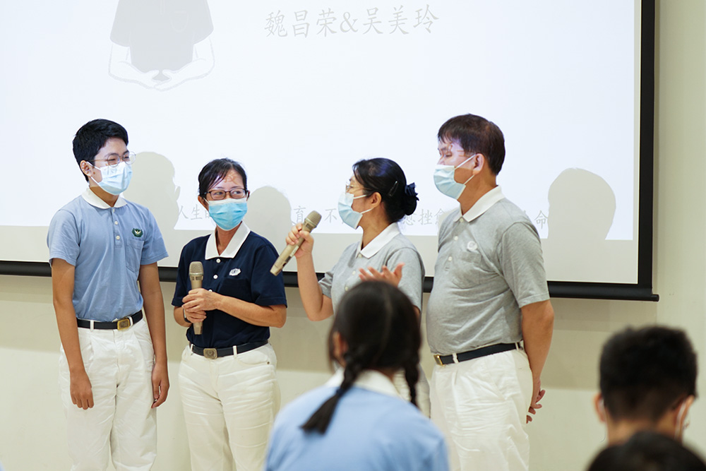 慈少家长魏昌荣(右一)和吴美玲(右二)分享这一年在亲子在慈济的收获与感动。(摄/ 冯桂琼)