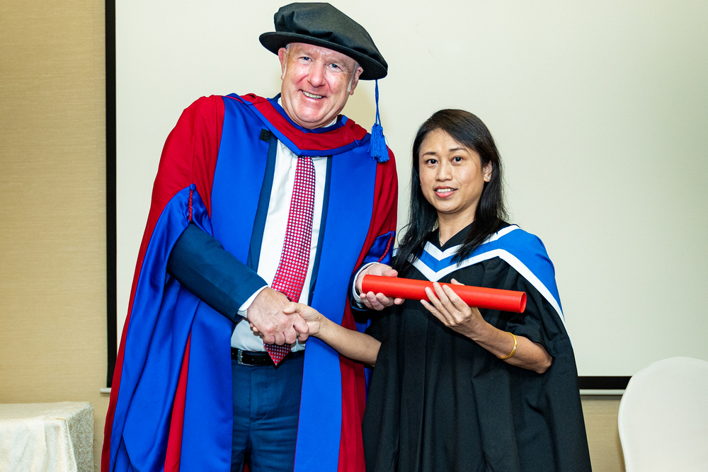 坚信终身学习信念,戴钰郿在51岁完成工商管理硕士学位课程。(提供/ 戴钰郿)