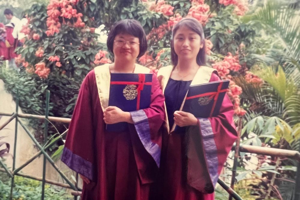 尽管不得不停止学习以养家糊口,但戴钰郿(右)从未放弃教育梦,最终从师范大学毕业成为一名教师。(提供/ 戴钰郿)