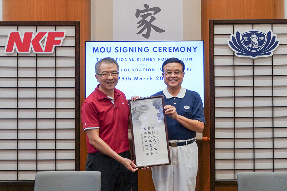 2023年3月29日,慈济和NKF在新加坡静思堂举行合作备忘录签署仪式。本着慈善互助精神,NKF免除了有关培训的费用,这也是NKF首次为非营利组织设立的洗肾中心无偿提供培训。