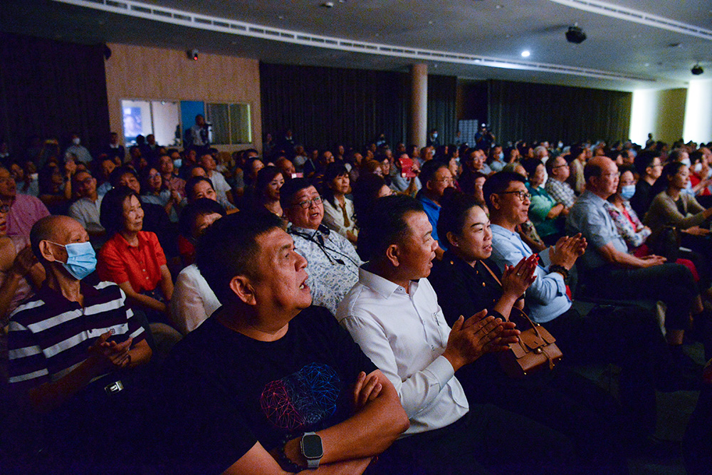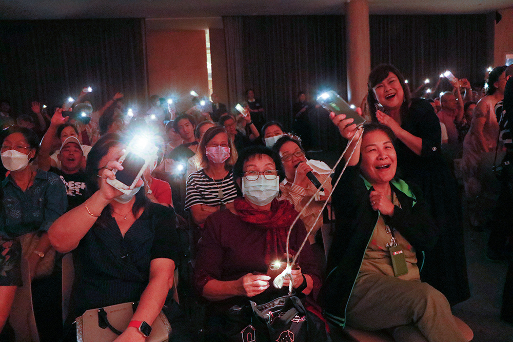 2023年7月21日的慈善感恩音乐会,唱到公益歌曲《明天会更好》时,全场不约而同拿起手机,打开灯光,一起合唱。(摄/ 蔡佑良)
