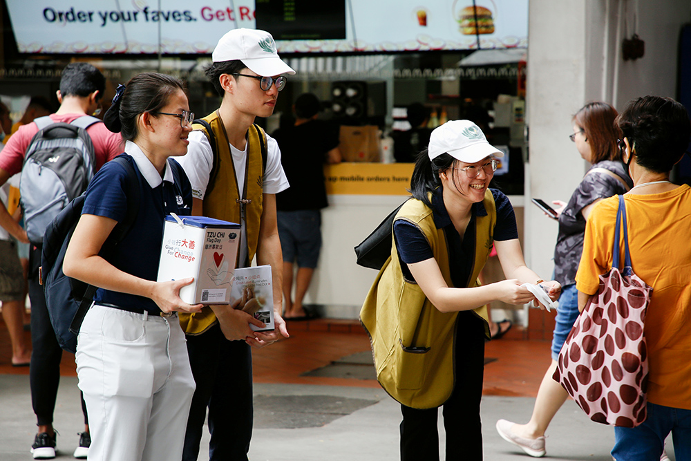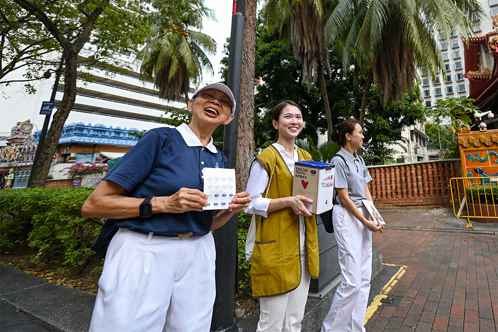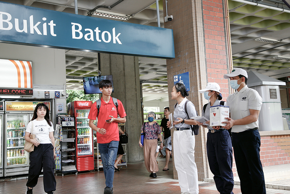 募心募爱的志工遍布新加坡全岛的多个地铁站、菜市场、商场、庙宇周围等各个角落。(摄/ 黄建兴)