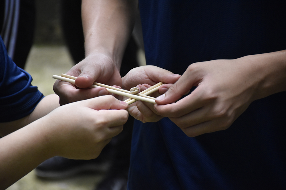 “转,再转,快快快!”规定时间内,大家将手上宝特瓶翻转一圈,直到瓶子能够站立,才能拿取一样物品,如纸板、绳子、宝特瓶或纸盒等。最终的挑战是将这些物品堆叠起来,比赛看谁能够叠得既高又稳。
