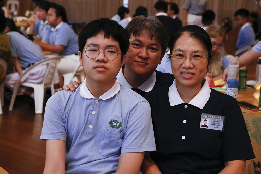 陪伴儿子魏家正(左),爸爸魏昌荣(中)和妈妈吴美玲(右)也投入慈少班当队辅,学习以“用菩萨的心爱自己的孩子”,与孩子共处。(摄/ 冯桂琼)