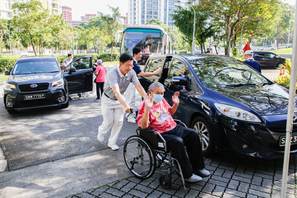 2024年1月21日,慈济基金会(新加坡)于静思堂举办两场新春慈善发放日。早上十时未到,已经有照顾户陆续抵达。有的照顾户搭乘公共交通自行前来,或是在地铁站乘搭慈济列车;一些行动不便的照顾户则由访视主责载送前来静思堂。志工小心翼翼地搀扶长者,场面温馨,好像回家过节一样。
