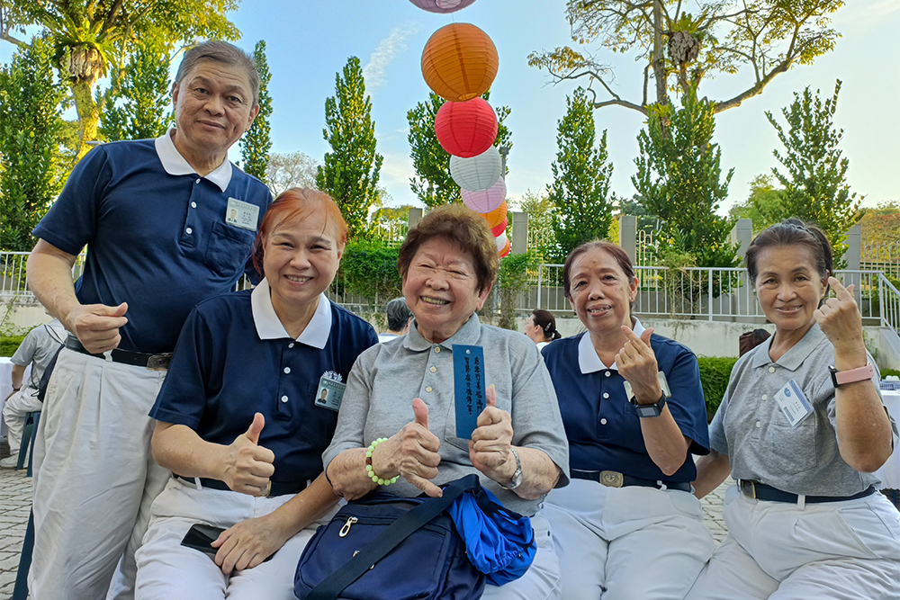 2024年9月22日,31周年志工感恩会这天,同社区的志工陈玉陪伴李凤莲到静思堂,享受美食,感受喜悦。陈玉也鼓励这位四代同堂的祖母级志工,像她所抽到的静思语“慈悲行善福满门,智慧处世德传家”,活到老,健康行善到老。